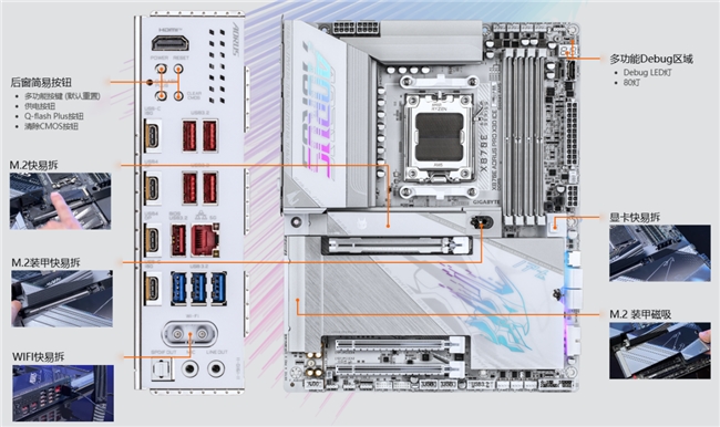 技嘉 X3D 系列主板延续并升级了「快易拆」设计理念,显著简化装机与升级流程: