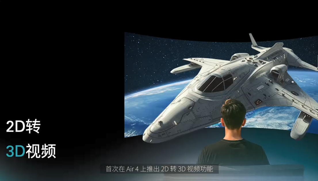 雷鸟 Air 4 系列还通过全新的 AI 能力,让普通视频内容重获新生。Air 4 系列全球首发 AI 3D 功能,通过 AI 分析能力,用户可一键将 2D 视频转成 3D 格式,获得超沉浸的观看体验。此外,雷鸟 Air 4 系列还支持将 SDR 视频 AI 转换为 HDR 视频,海量存量 SDR 内容无需等待重制,即可在雷鸟 Air 4 上享受媲美 HDR 的震撼画质。