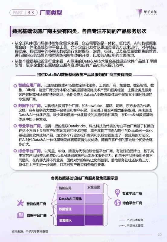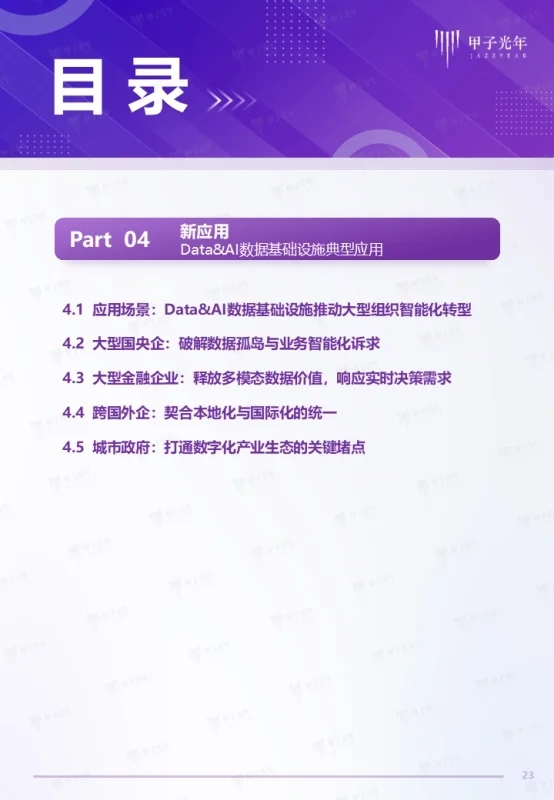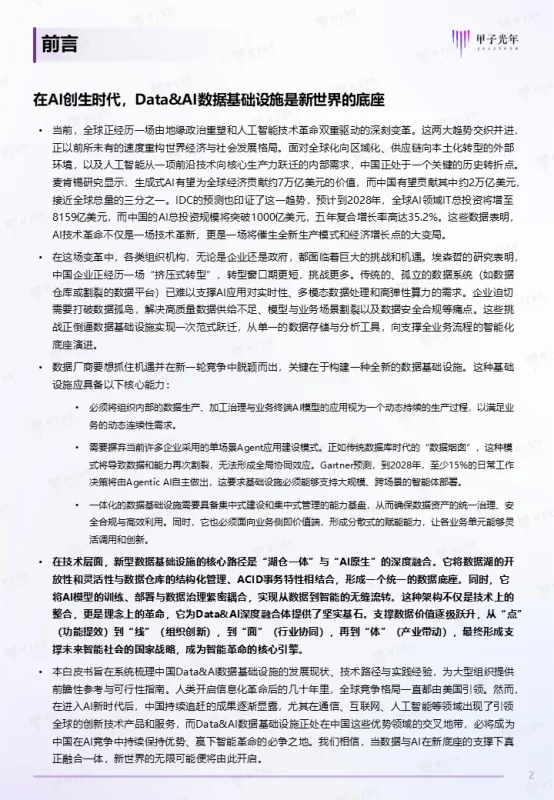 为探索分析 Data&AI 一体化的最新趋势,甲子光年智库特开展本次研究工作,希望系统梳理中国 Data&AI 数据基础设施的新趋势、新定义、新范式与新实践应用案例,为大型组织部署 Data&AI 数据基础设施提供前瞻性参考与可行性指南。