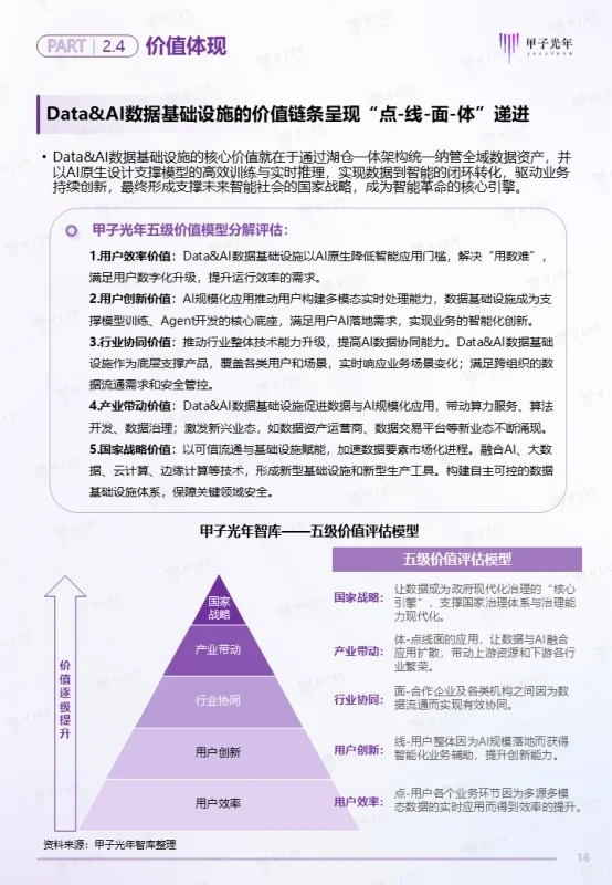 ·Data&AI 数据基础设施的价值链条呈现「点-线-面-体」递进。