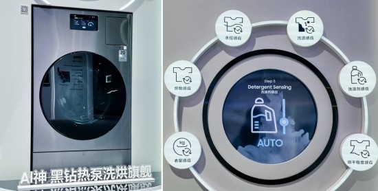 当出差、应酬与各种社交活动频繁交织, 日常衣物的换洗、重要着装的干洗与护理便成为一件繁琐又费时的无奈家务。进博会现场, 三星家电展出了一系列洗烘护产品, 包括三星 AI 神 洗烘组合 9 系、AI 神 黑钻热泵洗烘旗舰和 AI 神 黑钻衣物护理机等等。不仅凭借其超薄大容量的机身设计进一步节省家居空间, 让衣物换洗省心省力, 还凭借一系列 AI 创新应用为衣物带来全方位的细节呵护, 让用户足不出户即可获得从洗涤、烘干到奢护的一站式衣物解决方案, 延长衣物寿命并改善穿衣体验, 从容应对各类社交场合。
