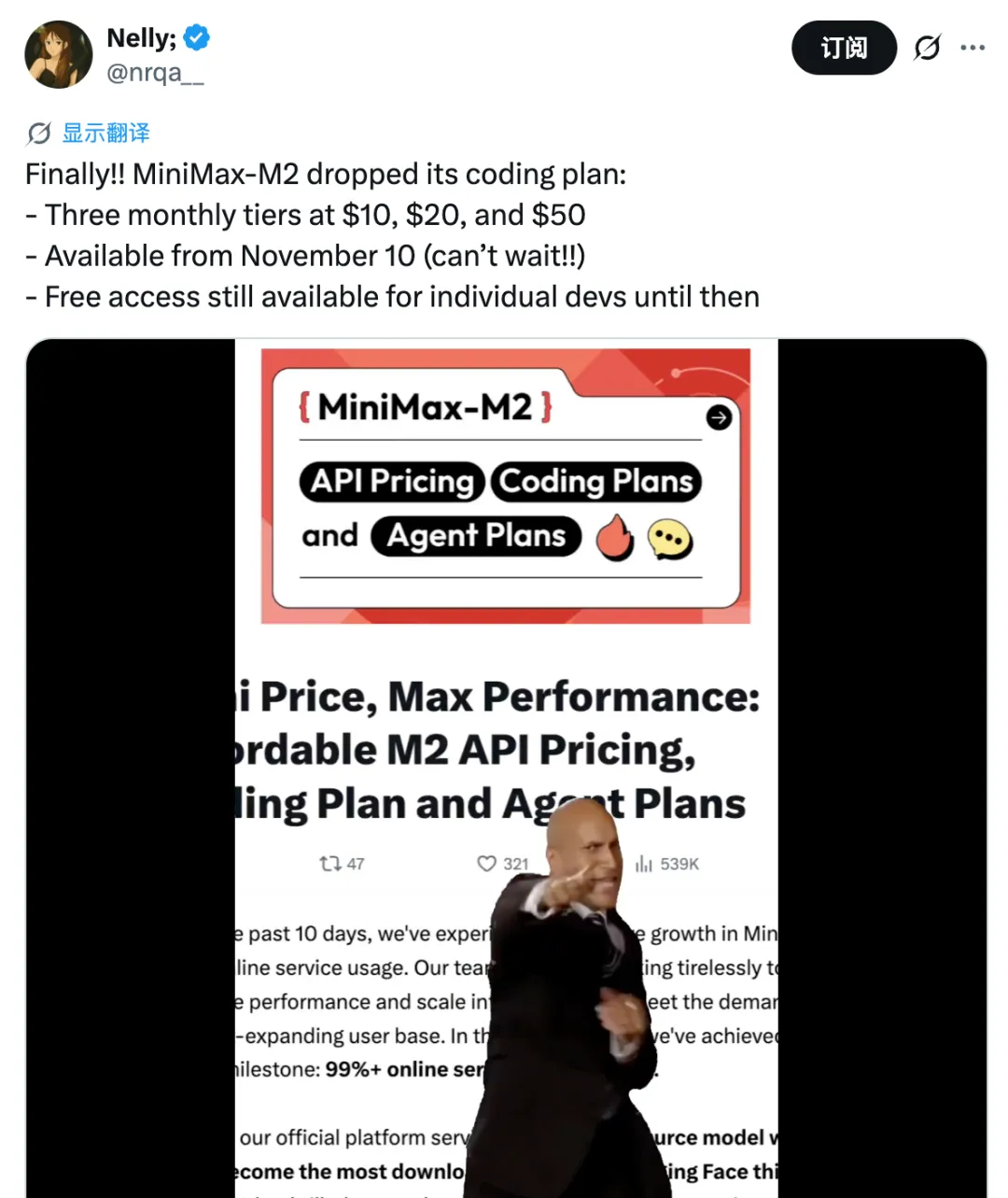 正如海外开发者在 X 上制作的一系列梗图:一边是标价 100 美元的 Claude,一边是标价 8 美元、表现却差不多甚至更好,用量更多的 M2。在一个正常的商业世界,会选谁自然不言而喻。