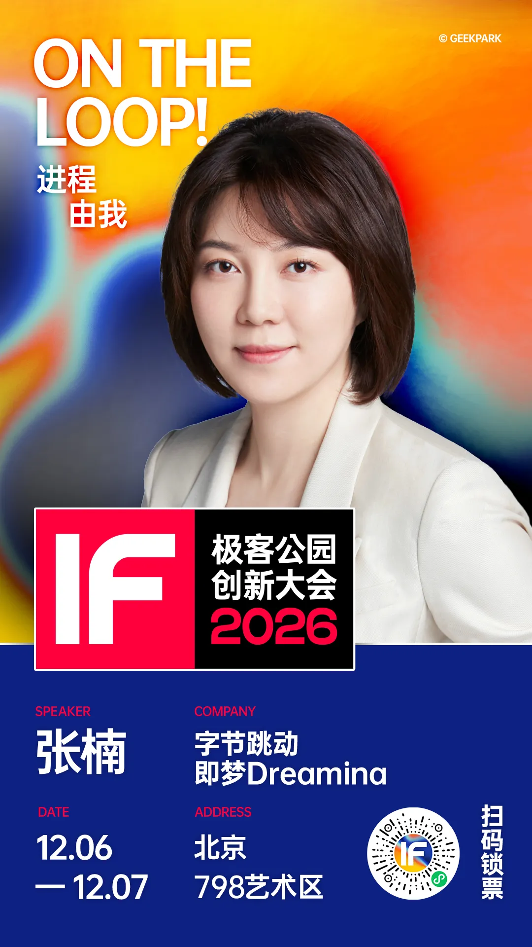 时隔一年半,站在 2025 年的尾声,张楠带着剪映与即梦,来到了极客公园创新大会 IF 2026 的现场。
