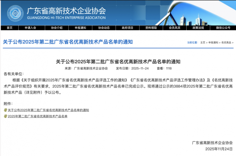 据悉,「广东省名优高新技术产品」是广东省科技厅、广东省高新技术企业协会为了促进科技创新和技术攻关,引导企业以高质量科技供给助推高质量发展推出的一项省级产品荣誉认证。