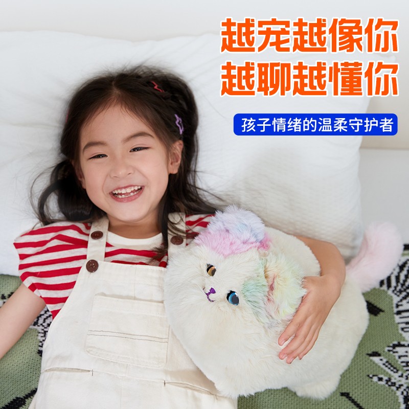 与追求极致仿生的机器狗不同,「抱抱喵」选择了一条更贴近大众市场的技术路径。其在保留毛绒玩具亲和力的基础上,逐步融入智能交互功能。今年推出的「AI 抱抱喵」更实现了多模态交互,能够感知用户情绪并作出回应。