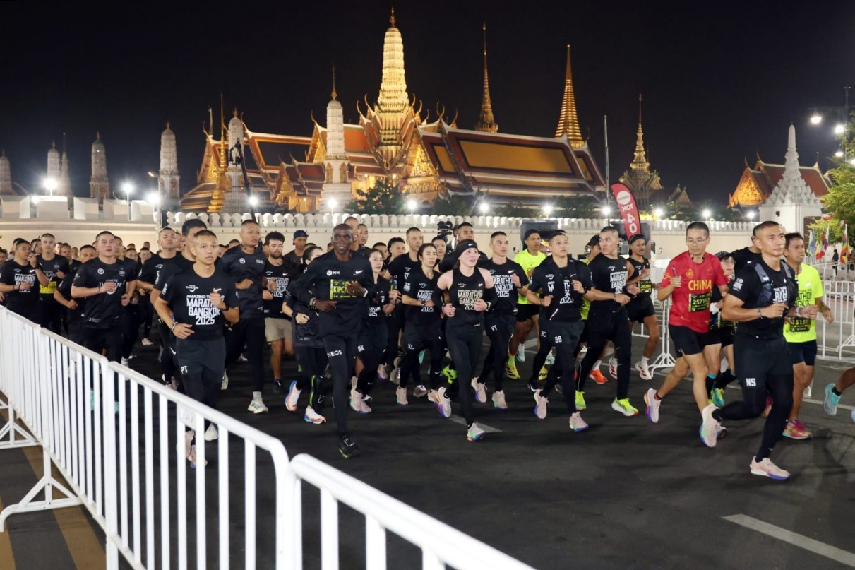 泰国,曼谷,11 月 30 日,由世界田径联合会、泰国国家旅游局、泰国国家体育局联合主办,泰国铁人三项联盟承办的第八届「神奇泰国」曼谷马拉松(Amazing Thailand Marathon Bangkok)盛大举行。来自 86 个国家的 4.8 万名跑者从曼谷 MBK 购物中心出发,途经伦坡尼公园、胜利纪念碑、大皇宫等城市地标,在璀璨霓虹灯下用脚步丈量风景,点燃曼谷运动激情。泰国王后素提达参加此次赛事,与来自世界各地的跑者一起奔跑,为泰国体育文化的多元活力与精彩内涵写下鲜活注脚。
