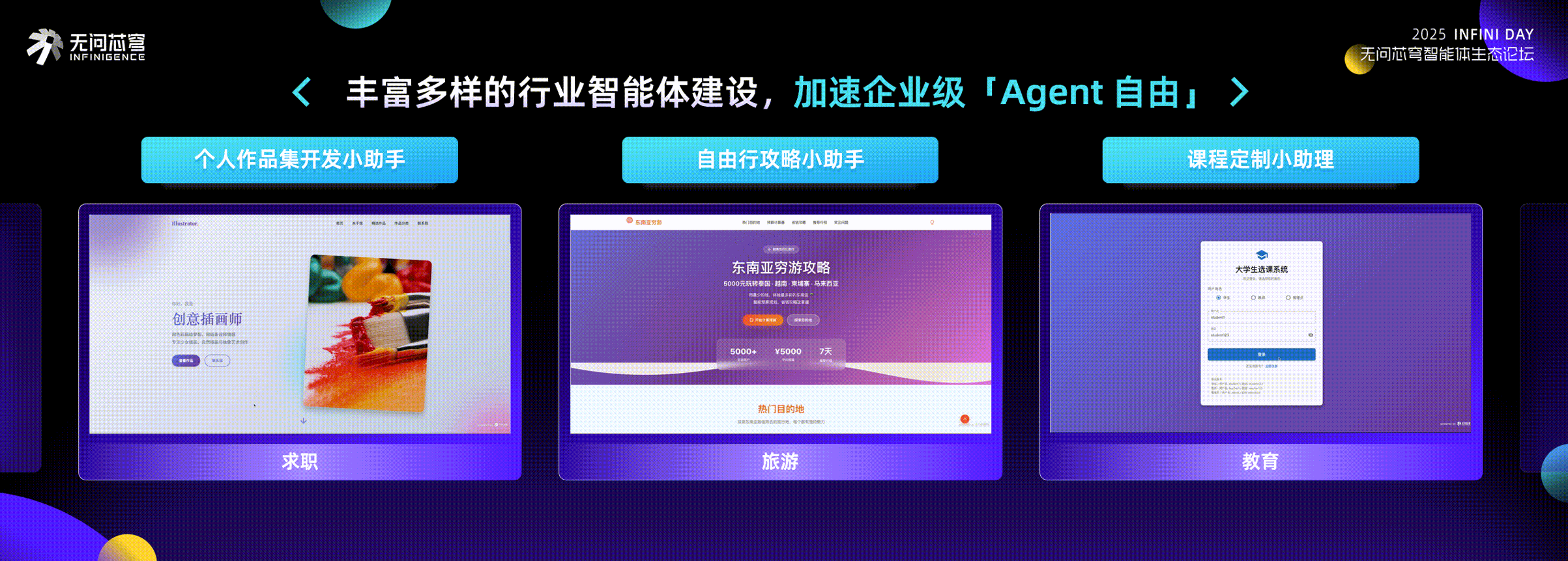 类似的生产力兑现也正在求职、旅游、教育等多个行业同步发生。无问芯穹智能体服务平台正以更高性价比和可规模化的智能体服务模式,为多种行业客户构建智能体服务提供高效、敏捷的服务,帮助企业实现自身行业积淀与技术能力向长远业务价值的扎实转化。
