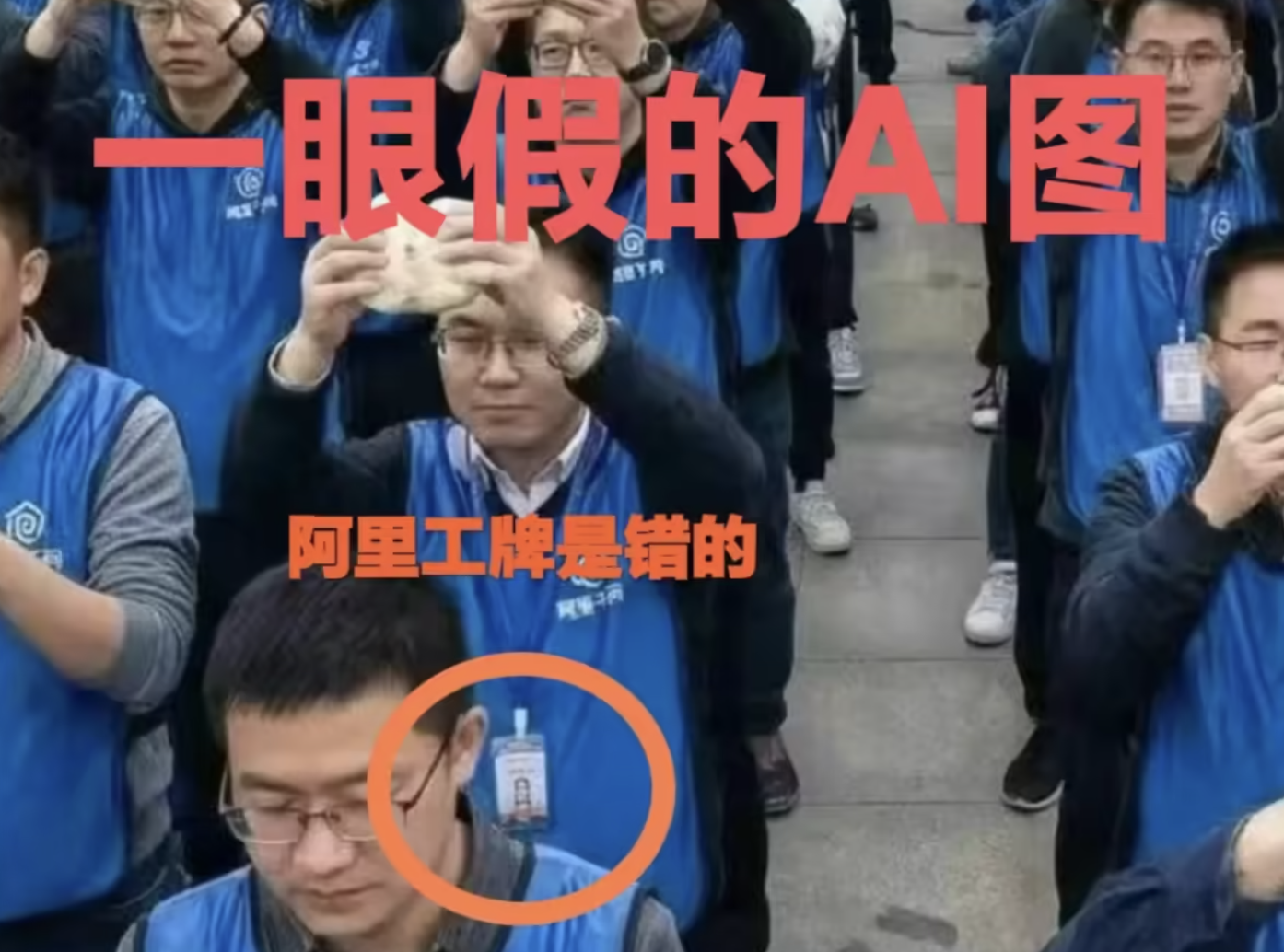 12 月 19 日消息,今日网络流传一张所谓「阿里千问全员会」图片,图中疑似阿里千问员工聚集在广场上手举豆包,广场一侧有「干死豆包」标语。对此,阿里相关人士向财联社记者辟谣,表示此图是「假的」。(来源:财联社)