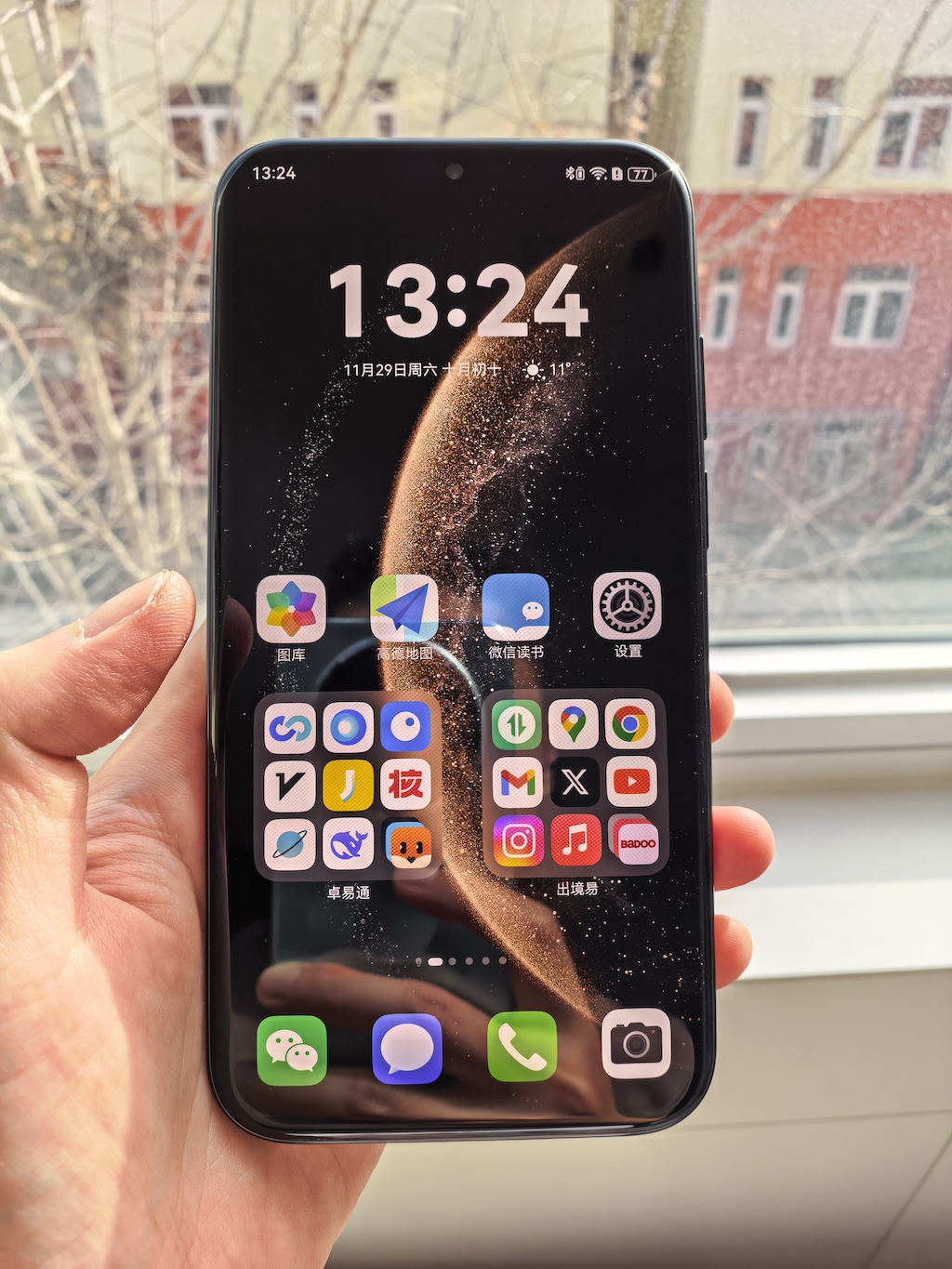 这块屏幕更像是一种「恰到好处」的选择。在这个尺寸下,华为通过极窄的边框和等深四曲面的设计,消解了大屏带来的撑手感。2160Hz 的高频 PWM 调光和 4000 尼特的局部峰值亮度,足以支撑起绝大多数户外场景下的使用。对于非参数党而言,这块屏幕的通透感和色彩还原已经足够出色,它服务于「好看」和「好拿」,而不是单纯为了刷榜。
