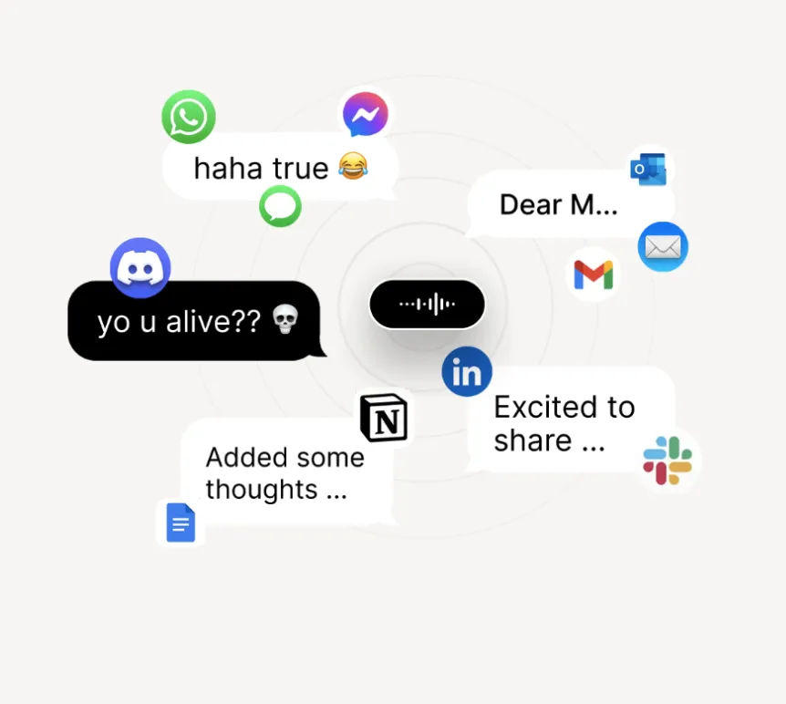根据不同 App 的上下文语境,Typeless 会调整说话的语气