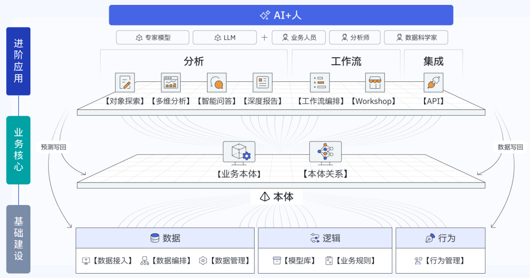 远期构建持续进化的 AI 底座与智能体矩阵,通过数据与场景的持续反馈训练,强化 AI 底座能力,形成智能复利,构筑企业长期竞争壁垒。