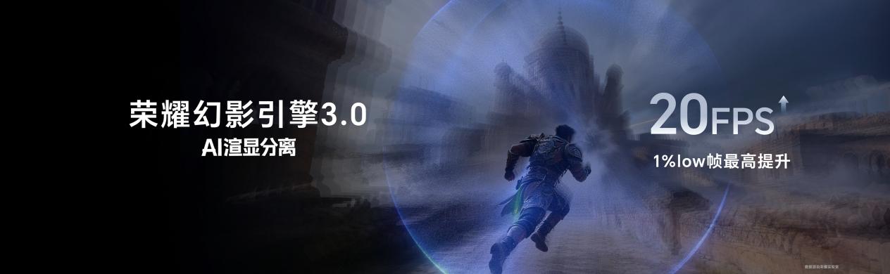 与此同时,荣耀 WIN 全系搭载荣耀幻影引擎 3.0,AI 渲显分离技术进一步升级。通过 AI 技术,实现对卡顿帧的精准预测和渲染优化,1%Low 帧至高提升 20FPS,带来更稳定的帧率、更丝滑的触控。