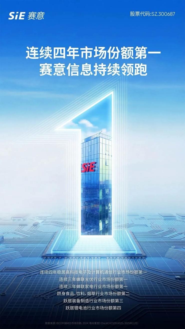 在工业软件上升为国家战略竞争高地的当下,这份长年的坚守迎来了丰硕回报。据 IDC 数据显示,赛意信息不仅连续四年蝉联高科技电子行业 MES 市场份额第一,更在光伏与家电两大领域实现了市场份额的「三连冠」。
