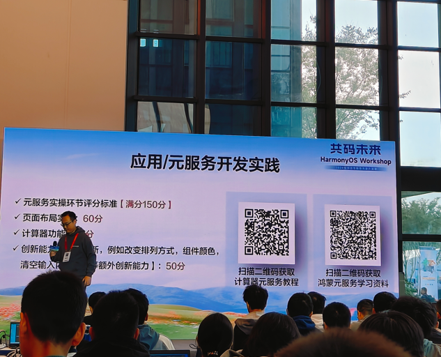 本次活动分为前半段的框架机制讲解与后半段的现场编程挑战。现场也是来了巨多人。这一次我们主要了解了应用 / 元服务开发实践的一系列东西,还参加了一个现场小考试,让我对鸿蒙的元服务有了更多的了解。