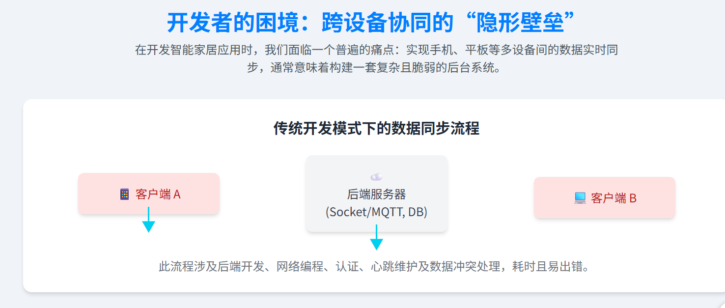 但开发者骨子里对前沿技术的饥渴是无法抑制的。促使我真正开始行动的,不是任何官方宣传,而是我手头的一个实际需求:我们正在开发一款智能家居控制应用,痛点在于不同设备间的数据同步和任务迁移需要大量复杂的网络代码,性能和稳定性都很差。我听说鸿蒙在「分布式」方面有独特优势,于是决定抱着「试试看」的心态,踏入这个陌生的领域。