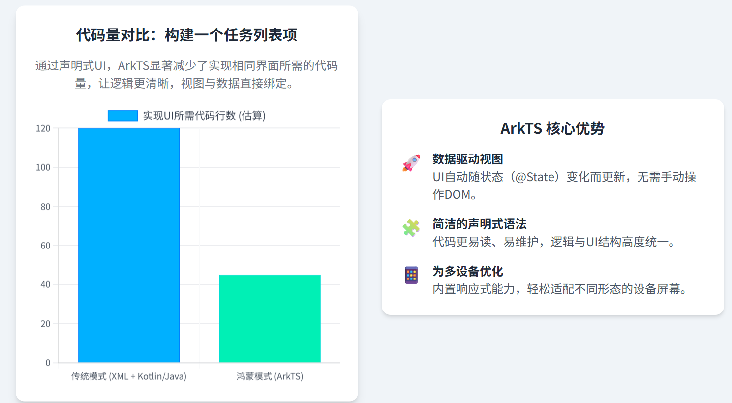 那一刻,我体会到了 ArkTS 的优雅:数据驱动视图,逻辑和 UI 融合,代码量锐减。它不是对某个现有框架的简单模仿,而是针对多设备 UI 特性进行了优化。但更重要的,这只是一个开始。