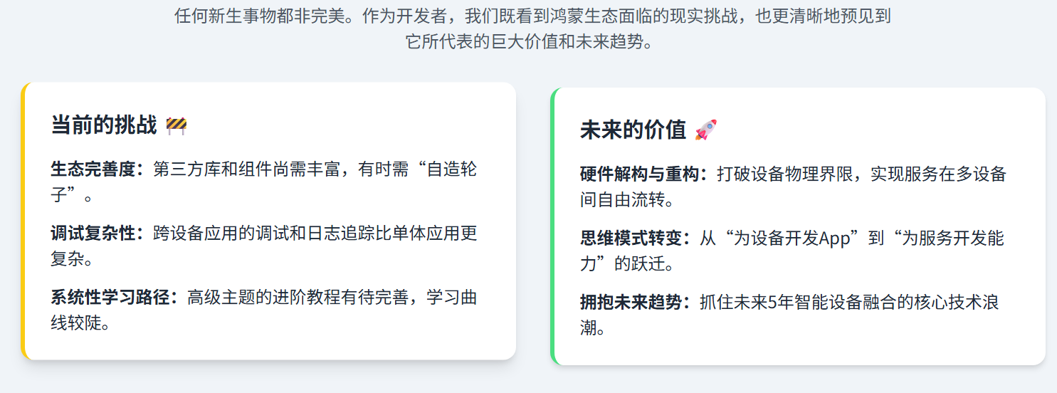 回顾这几年从「鸿蒙小白」到「深度实践者」的经历,我的心声是发自肺腑的,不谈任何华丽的比喻,只谈开发者需要面对的现实。