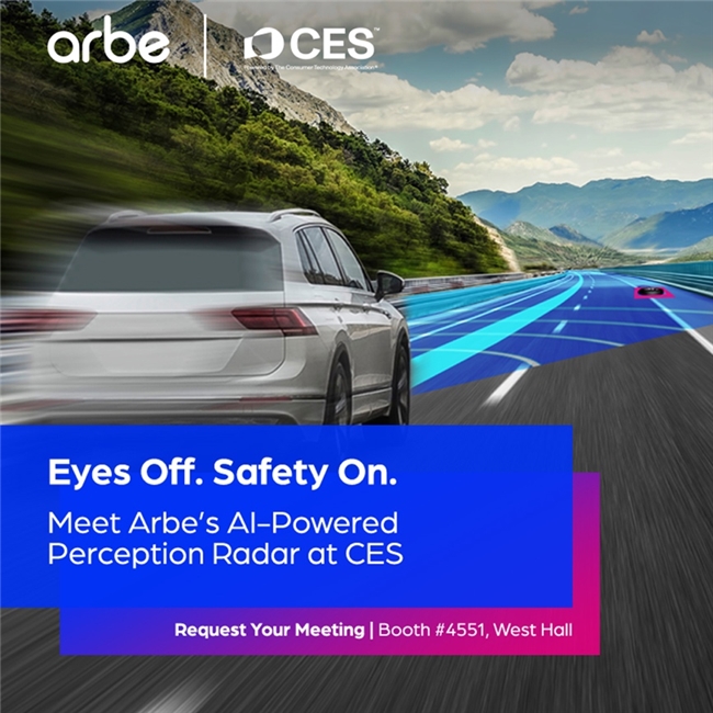 2026 年 CES 国际消费类电子产品展览会(CES 2026)上,Arbe 将首次展示其车规级雷达系统,该系统可集成完整的感知堆栈。