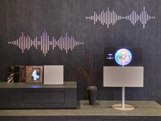 在外观方面颇为吸睛的一系列音频设备,为三星展位注入了强烈的视觉冲击。作为一款让音乐可视化的设备,Transparent MICRO LED 重构了黑胶唱片机的概念,其形态仿佛一张悬浮在空中的黑胶唱片,同时内置了高端音响系统,确保音频质量不打折扣。