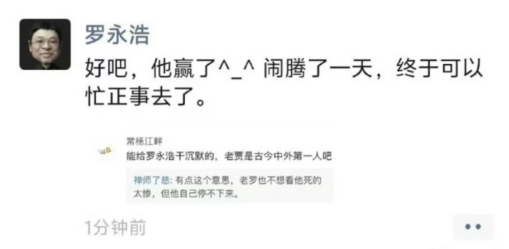 贾国龙与罗永浩微博均被禁言,罗永浩朋友圈回应:他赢了