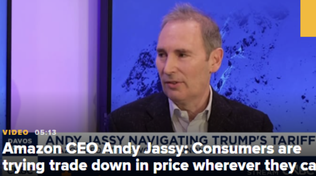 贾西于周二在瑞士达沃斯世界经济论坛接受美国消费者新闻与商业频道(CNBC)记者贝姬・奎克采访时透露,亚马逊及其旗下众多第三方卖家曾通过提前采购库存的方式,规避关祱影响,从而为消费者维持低价,但这批库存已于去年秋季基本耗尽。