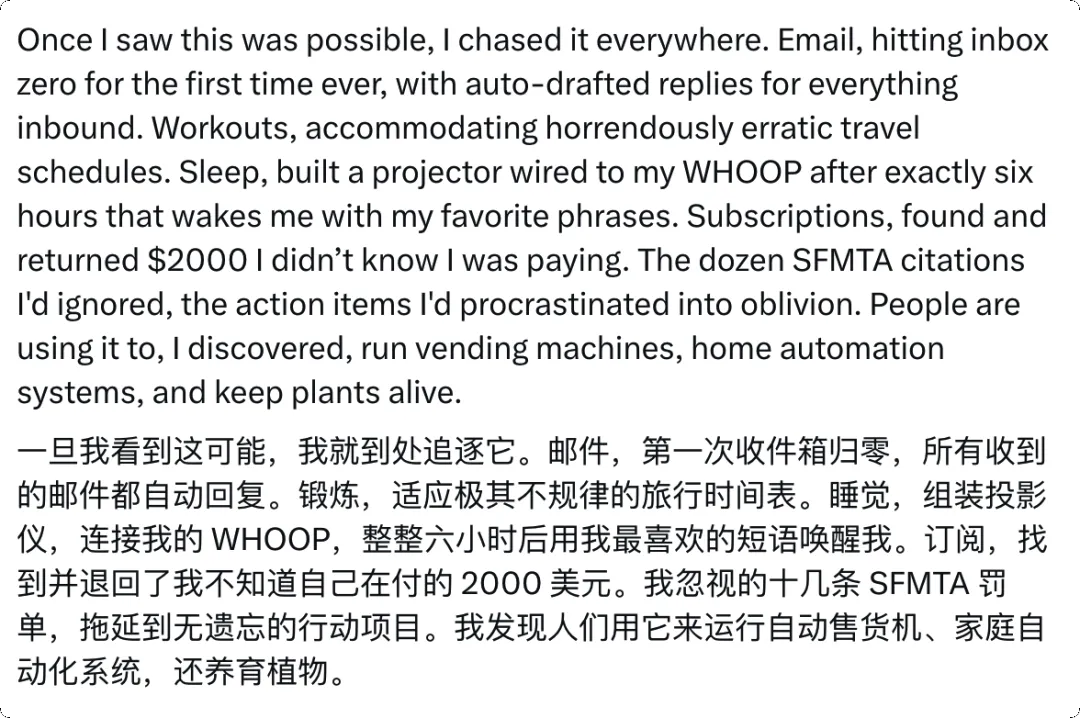 关键不是你会不会写代码,而是 你愿不愿意把生活当成一个可以系统化运转的东西 来设计, 并愿意信任和放权给 AI 。