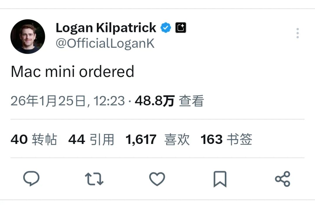 Clawdbot 让 Mac mini 成为了 AI Agent 领域的新时尚|图片来源:X
