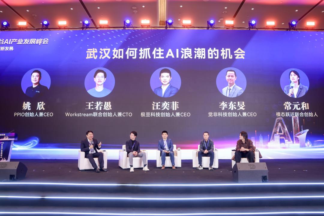 另外,在活动现场,姚欣与觉非科技创始人李东旻、极豆车联网 CEO 汪亦菲、Workstream 联合创始人、CTO 王若愚、模态跃迁联合创始人常元和进行了《武汉如何抓住 AI 浪潮的机会》的圆桌讨论。