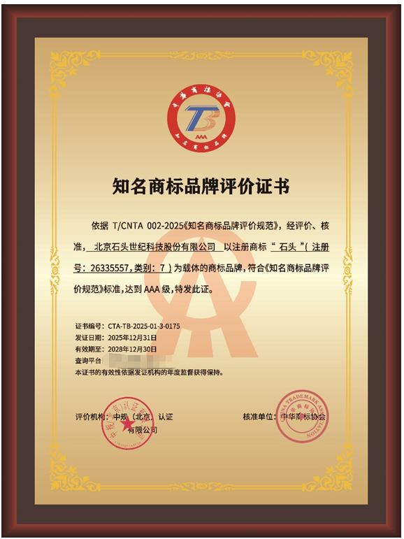 近日,北京石头世纪科技股份有限公司(以下简称「石头科技」)核心商标「石头」经过多轮严格评审,荣获 AAA 知名商标品牌评价证书。该商标注册于第 7 类「电动清洁机械和设备;真空吸尘器」等商品与服务,是企业品牌资产的重要组成部分。此次获评不仅是权威机构对「石头」商标市场声誉与综合实力的肯定,也是石头科技系统性品牌建设成果的集中体现。