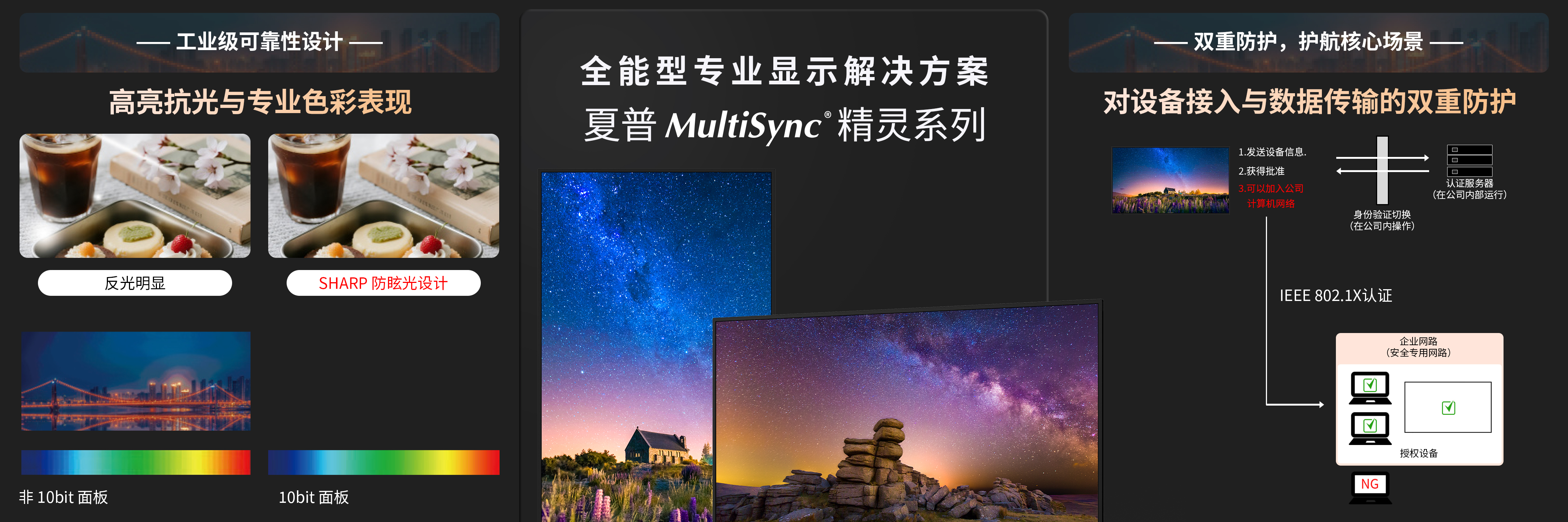 自 1985 年首款多频自动同步显示器问世以来,夏普 MultiSync 凭借对专业显示领域 40 年的执着深耕与不懈创新,铸就工业级显示解决方案的品质丰碑。全球累计超 8000 万台出货量、服务上千家行业客户的辉煌成就,印证了夏普对可靠性承诺与技术突破的永恒追求。2025 年,夏普正式推出精灵系列(PN-Mxx2/PN-Pxx6)与紫罗兰系列(PN-UN553S/PN-UN553V)两大重磅新品,以前所未有的工业级耐用性、极致精准色彩管理及创新定制场景化能力,为铁路、机场、医疗、控制室等专业领域注入全新动能,重塑行业标杆。