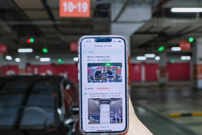 图组为:港珠澳大桥珠海公路口岸滴滴候车区和上车点、杭州东站车位信息推送