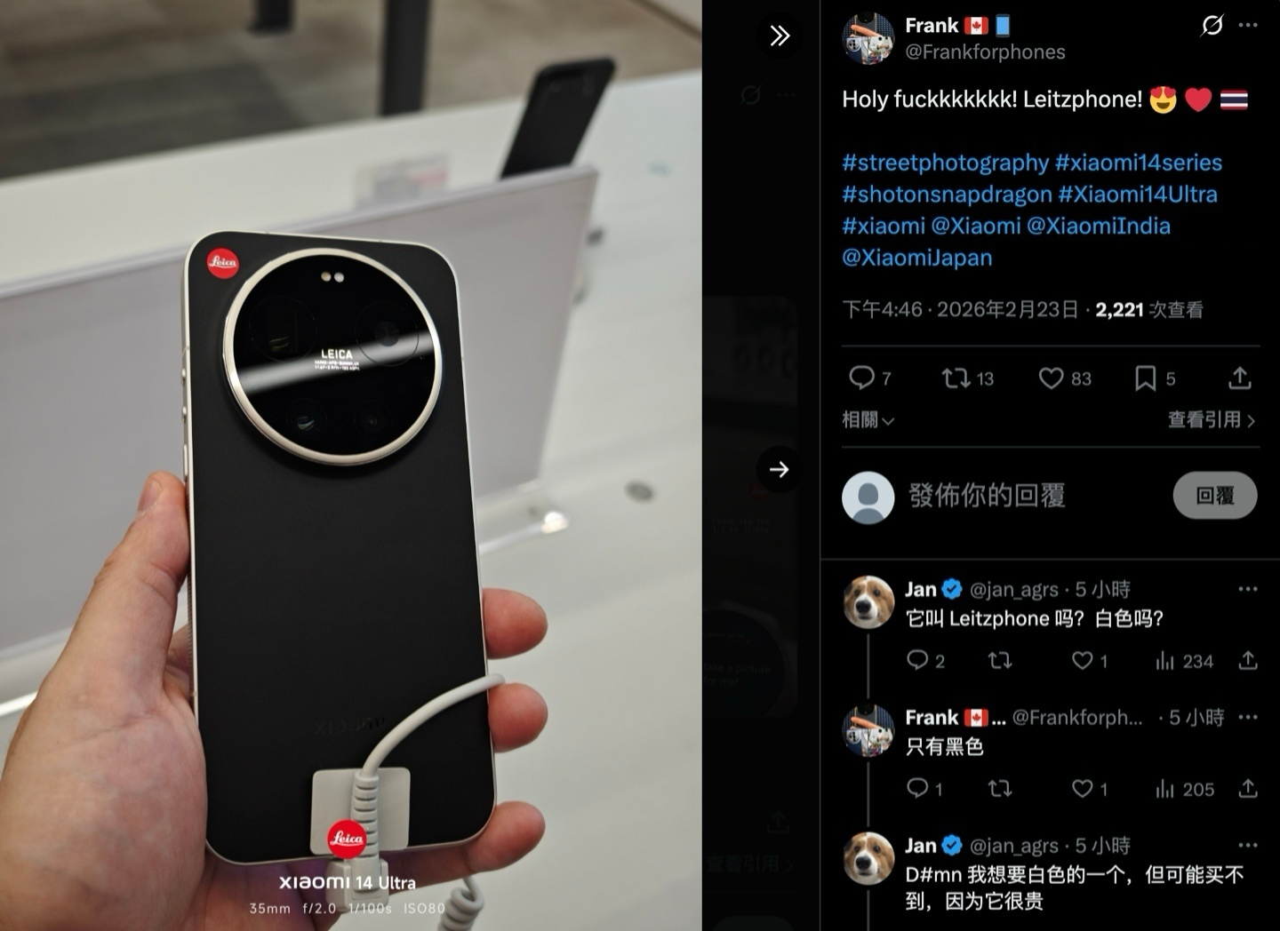 2 月 23 日消息,消息源 Frank 在 X 平台发文,分享小米 17 Ultra 海外徕卡版「LEITZPHONE」的实拍照片。