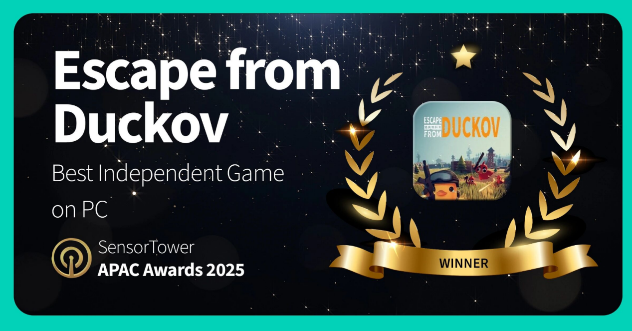2026 年 2 月 26 日,全球领先的数字市场分析平台 Sensor Tower 正式公布了其备受瞩目的 APAC Awards 2025 年度获奖名单。作为全球移动应用和数据领域的权威机构,每年 Sensor Tower 的 APAC Awards 榜单堪称是亚太数字生态的风向标。而今年,在这一汇聚亚太地区顶尖移动应用与游戏作品的权威榜单中,由哔哩哔哩游戏发行的国产搜打撤新游《逃离鸭科夫》脱颖而出,成功拿下「2025 年度最佳 PC 平台独立游戏(Best Independent Game on PC)」奖项!