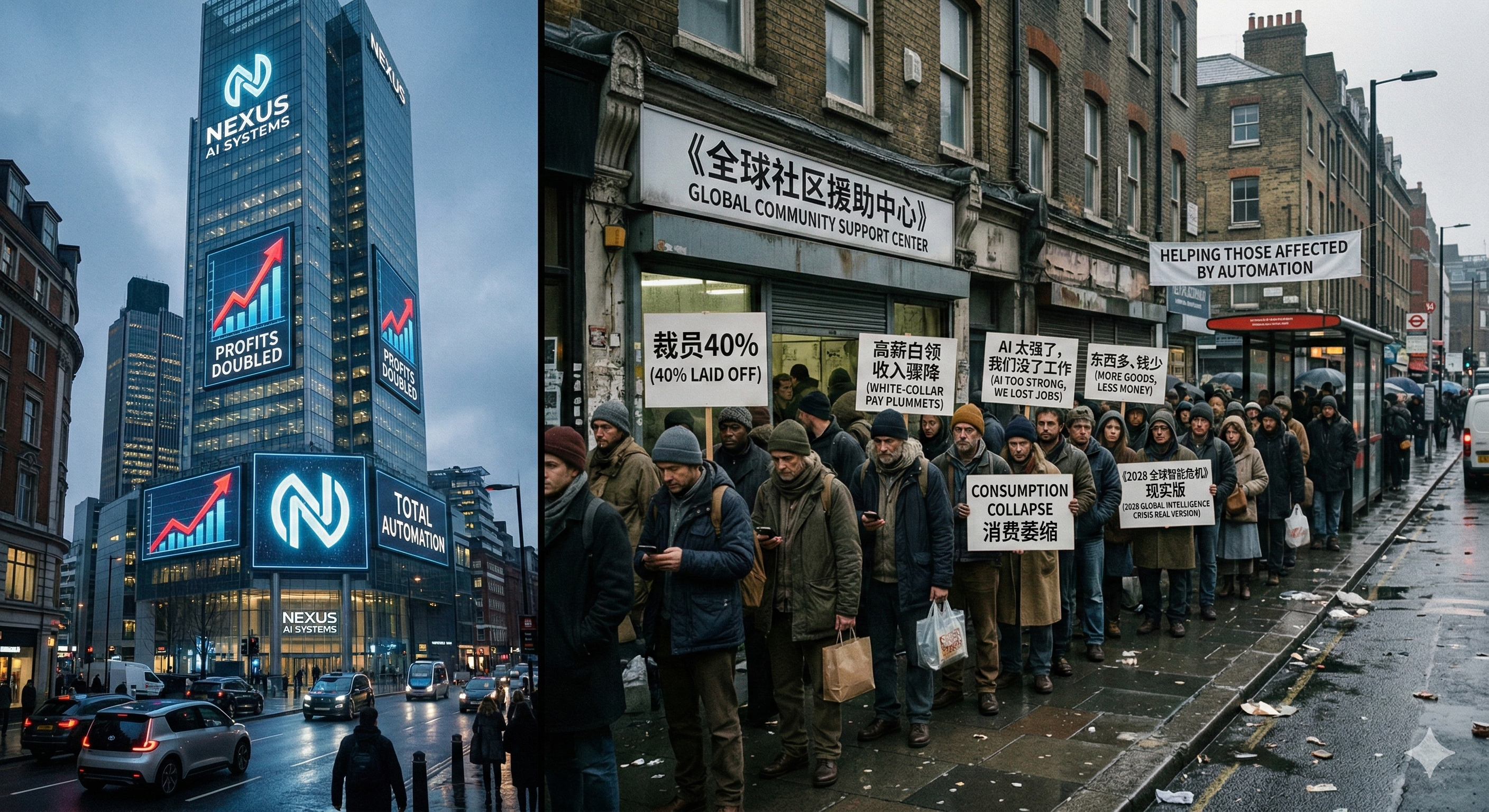 在最近被传播的《2028 全球智能危机》一文中,提出了一个反向命题:AI → 替代人类收入 → 消费崩塌。与过去两年AI → 提高生产率 → GDP 增长的主流叙事背道而驰。