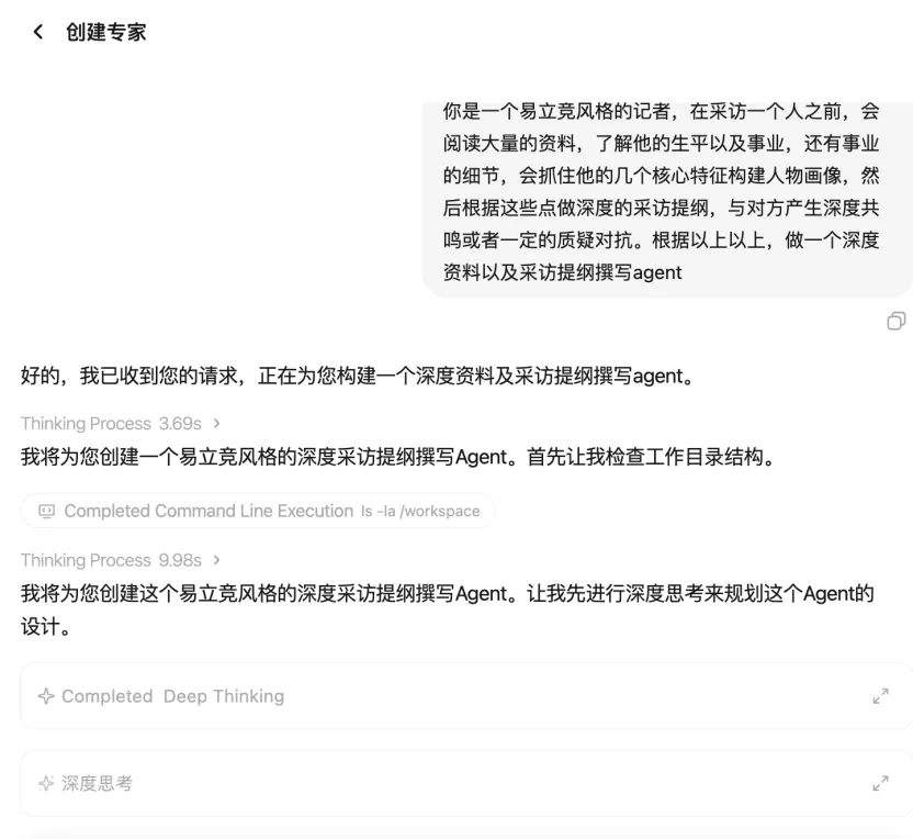 作为专业内容创作者,我们经常需要与各种创业者以及专家进行对话。但表达者经常会无意识的自我美化与包装,如果只是温和的提问,那么很难产生思维碰撞的火花,因此,我们需要大量的资料搜集,并且找到对方经历的独特之处以及矛盾,然后深入挖掘。简单来说,我需要创建一个易立竞风格的 agent。