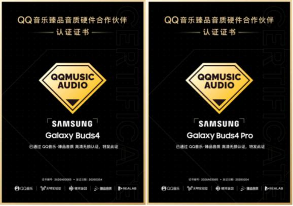 尤其值得一提的是,三星 Galaxy Buds4 与三星 Galaxy Buds4 Pro 凭借卓越音质表现,成功通过 QQ 音乐臻品音质认证。在使用 QQ 音乐时,三星 Galaxy Buds4 与三星 Galaxy Buds4 Pro 可以播放 QQ 音乐臻品曲库中的无损音源,高达 24-bit/96kHz 采样率解析的音源传输,为音乐爱好者带来更佳的聆听体验。三星还将与 QQ 音乐展开深度合作,共同打造从硬件解码到音源传输的全链路定制化的产品解决方案。