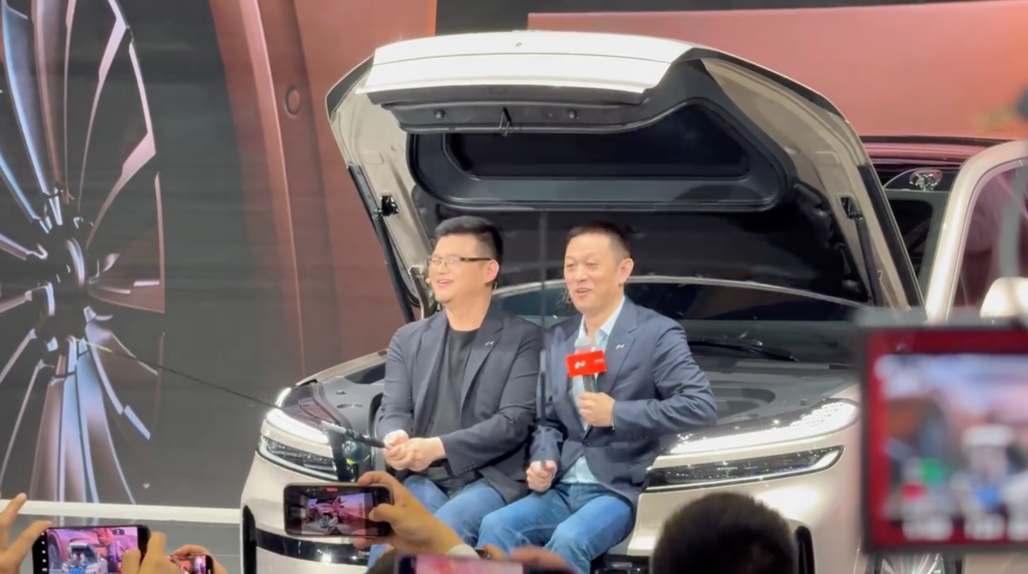 2025 年上海车展,李斌第一次展示「前备舱」功能 | 图源:视频截图