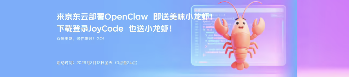 新用户登录京东云 JoyCode 智能编码助手,还可额外领取一份小龙虾。