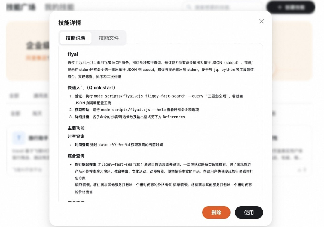 ClawHub 上的说明文档显示,「flyai」基于飞猪 MCP(模型上下文协议)作了标准化封装,提供覆盖机票、酒店、门票、用车、目的地玩乐以及机票次卡、酒店套餐等出行旅游商品的搜索、咨询、规划及预订等服务,横跨了导购到交易的完整链条。(来源:广角观察)