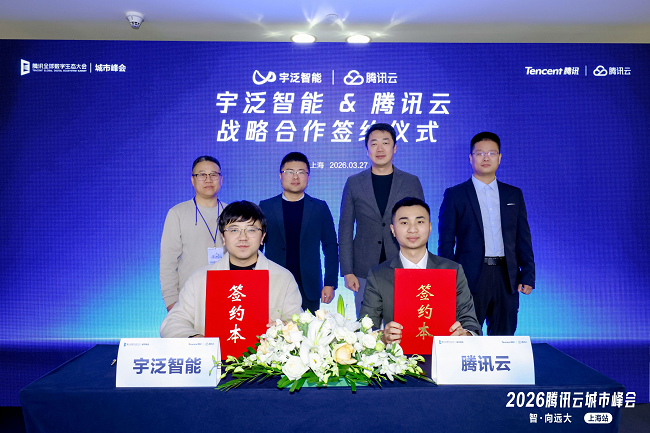 3 月 27 日,腾讯云上海城市峰会期间,腾讯云与宇泛智能签署战略合作协议。