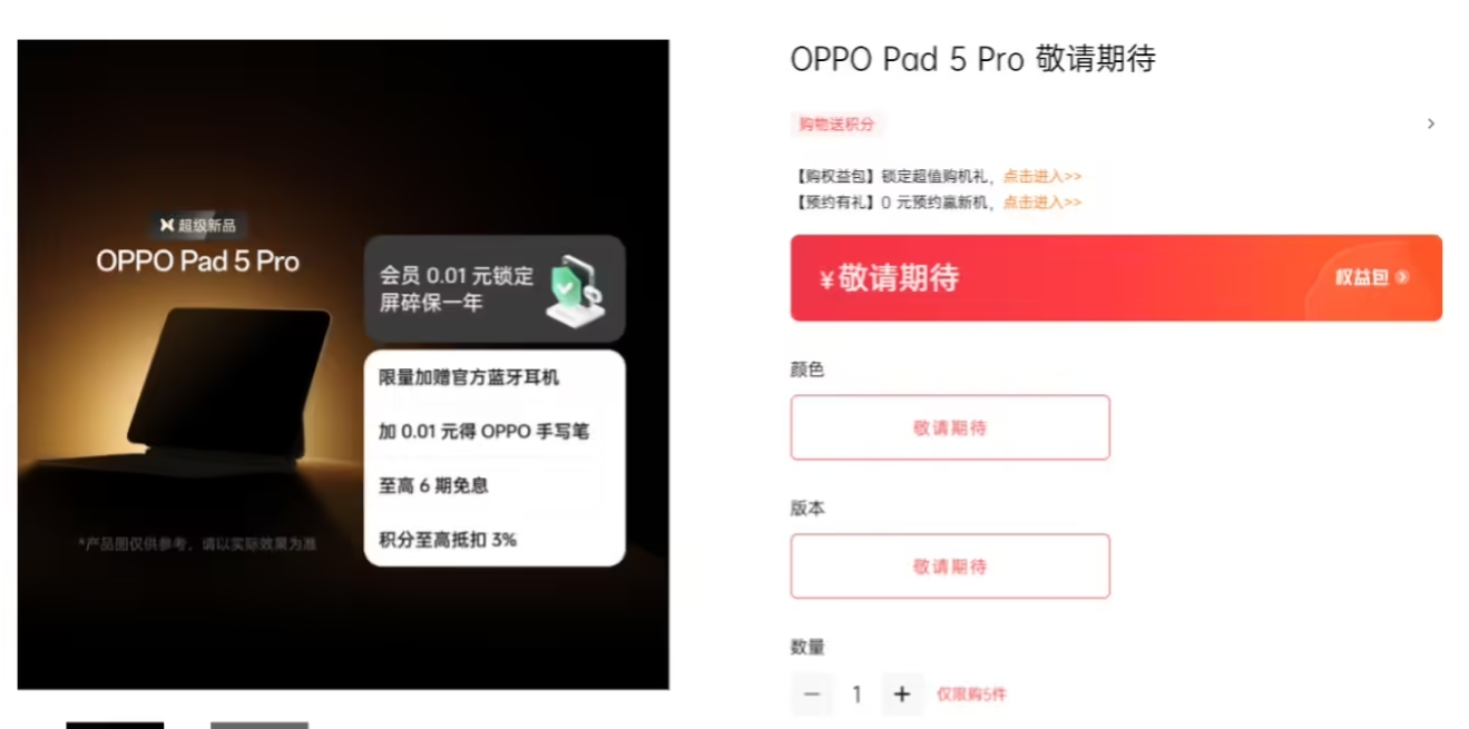 OPPO Pad 5 Pro 平板现身官网,消息称新机将搭载第五代骁龙 8 至尊版处理器