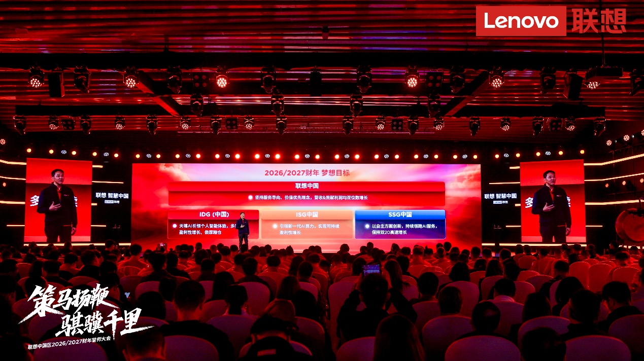 4月1日,联想中国区举行2026/27财年誓师大会,在回顾上个财年创下“历史最佳”业绩的基础上,公布新财年的“梦想目标”:坚持服务导向、价值优先理念,再度实现营收和贡献利润的双位数增长。