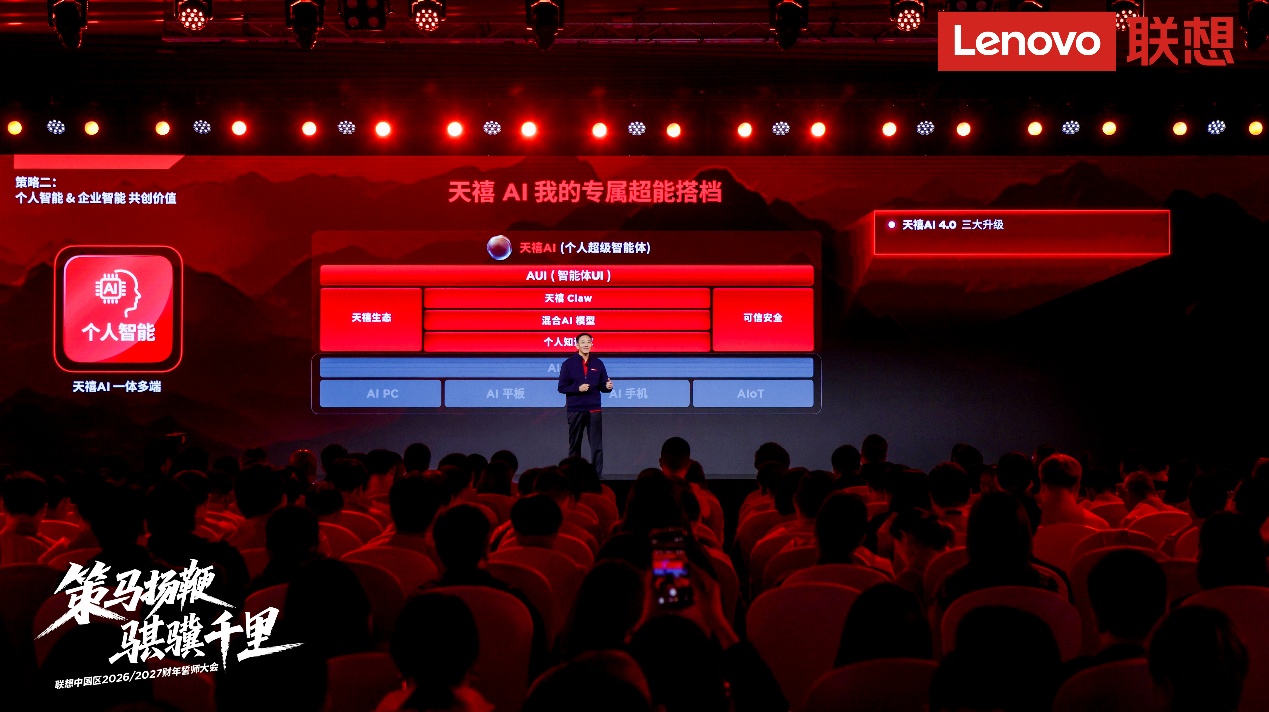新财年,联想中国区还将推出AI主机全新品类。它是天禧AI的新类型载体,放置在家中或办公室,拥有更强大的算力,承载天禧Claw的本地运行以及本地部署的个人大模型,节省词元(Token)成本。“个人智能的品牌口号是‘天禧AI,我的专属超能搭档’,我们要继续扩大PC领导地位,坐稳消费平板中国市场前三,冲击商用平板中国市场冠军,打造手机爆品,引领个人智能体验。”刘军表示。
