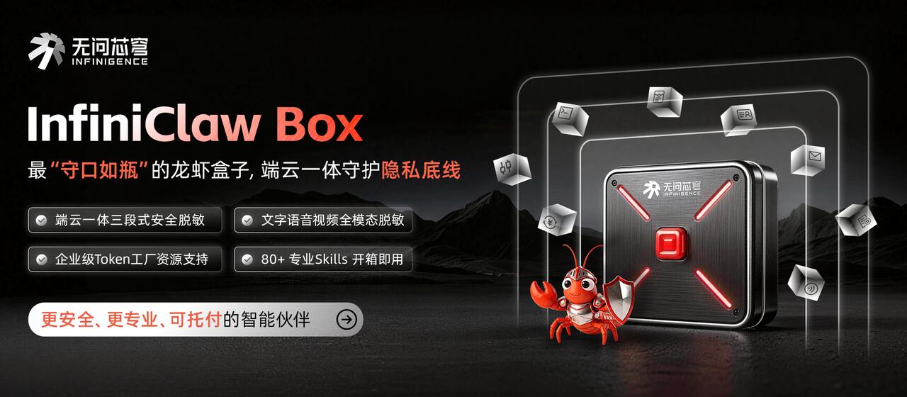 目前,InfiniClaw Box 已与爱芯元智等伙伴在端侧芯片优化与龙虾盒子等方面展开深度合作,未来还将进一步打通适配更多端侧芯片,持续探索本地龙虾在国产端侧芯片应用上的更多可能性。