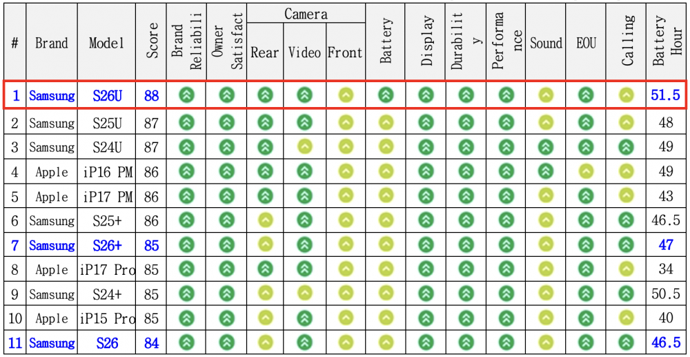 作为在全球范围内拥有极高公信力的独立评测机构之一,《消费者报告》的测试标准一向以严格、中立和客观著称,是消费者选购高端电子产品时的重要参考。此次三星 Galaxy S26 Ultra 能够名列前茅,不仅是对其硬件实力的肯定,更是对其「重塑用户日常体验」这一设计理念的认可。