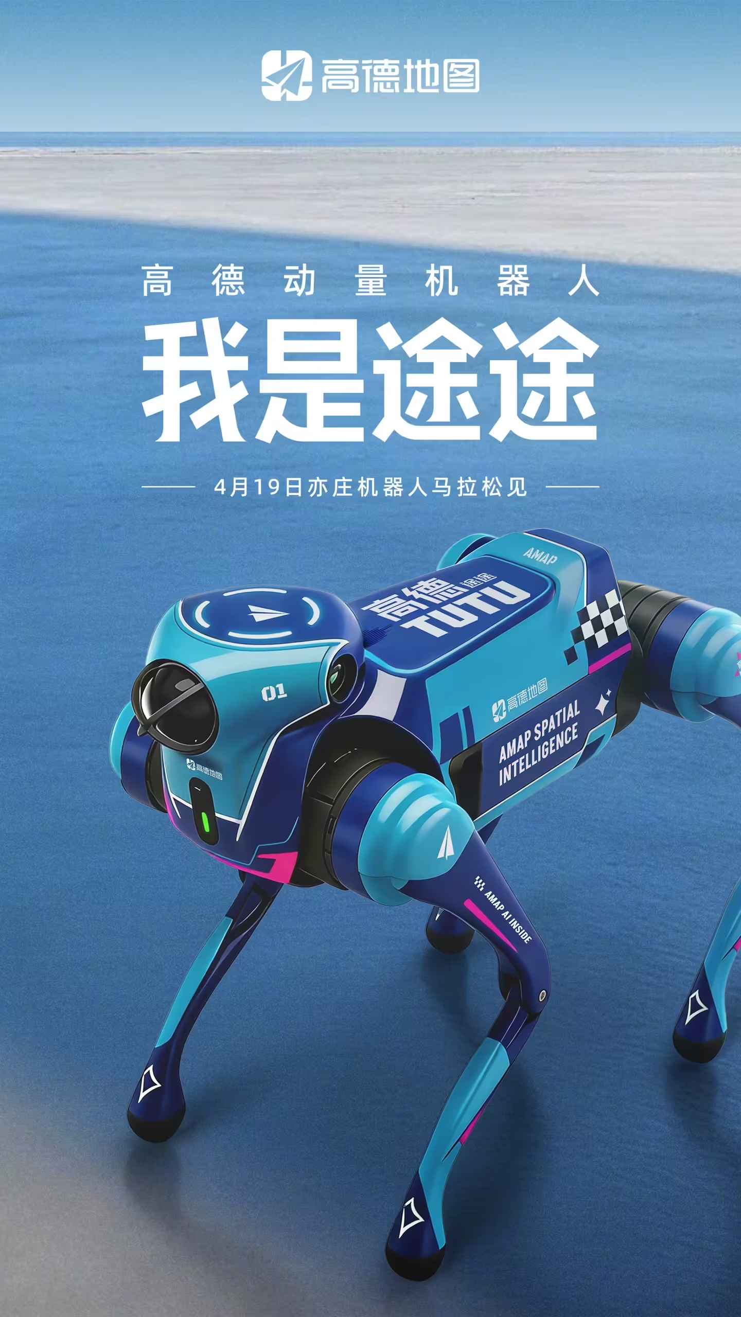 4 月 18 日消息,高德地图公布旗下首款动量机器人,将在北京亦庄机器人马拉松大赛上首次亮相。从官方海报来看,该产品为「机器狗」产品。