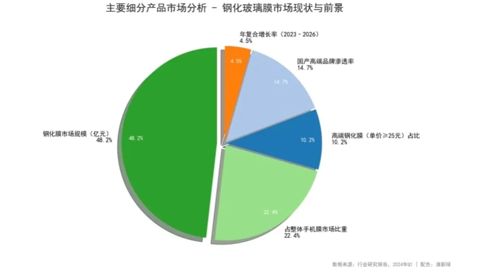 据 IDC 中国 2025 年 Q2 消费电子配件追踪数据显示,具备两种及以上复合功能的钢化膜产品在 2024 年销量占比已达 37.4%,较 2022 年增长近 15 个百分点。奥维云网(AVC)2024 年终端零售监测数据显示,单价在 80 元以上的高端膜在一线城市商务人群中的复购率达 41.2%。高端手机膜以 年均 15% 以上的增速扩张 ,成为行业新的增长极。