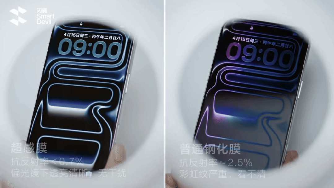 但闪魔的研发团队发出了一个「反行业共识」的疑问:用户既想保护原屏,又愿意花钱追求更好的体验,为什么不干脆做一张超越原屏体验的高端手机膜?