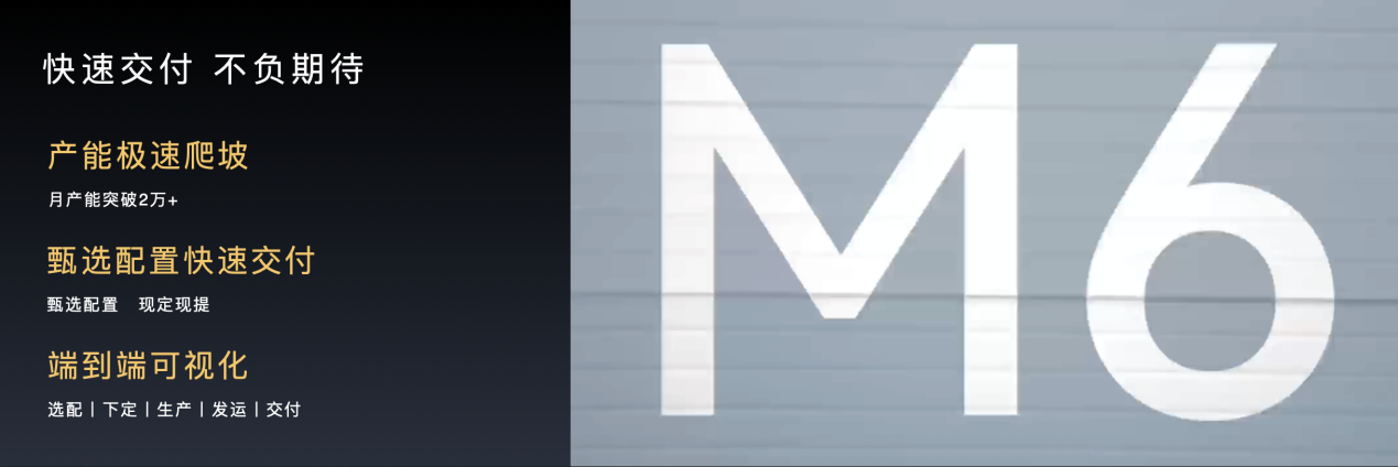 问界 M6 做到了发布即交付,依托快速爬坡的产能,问界 M6 臻选配置已陆续发往全国门店,实现现定现提,高效满足用户“五一”假期出行需求。