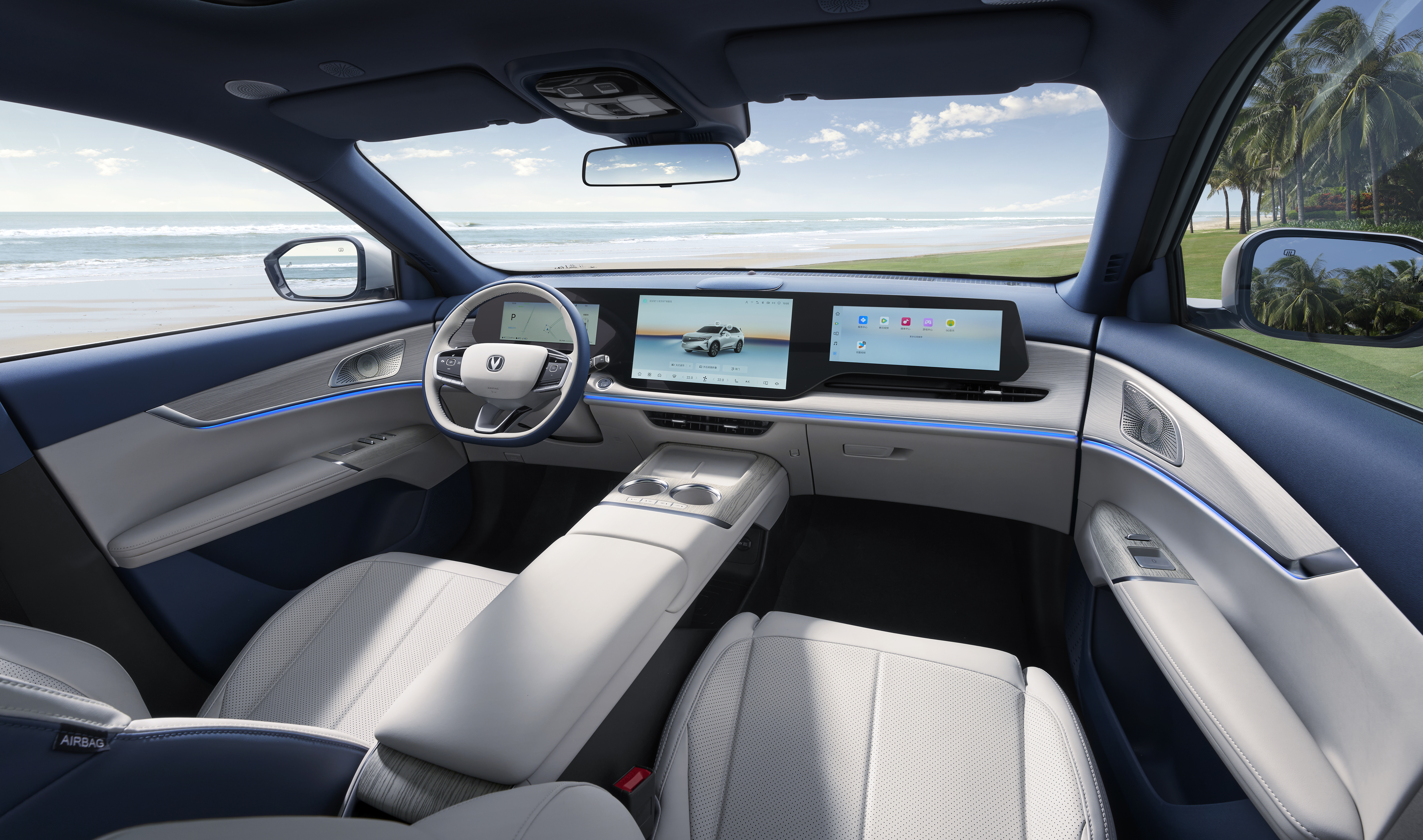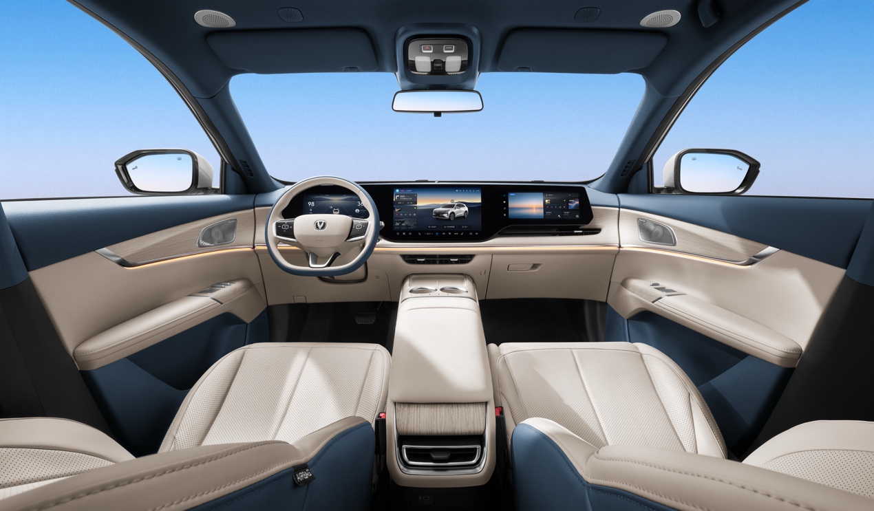 开出去有面子,停下来有里子。新车采用长安汽车最新“纵横万象”设计美学,前脸搭载同级最宽 V 形格栅,气场沉稳大气;全 LED 都市前大灯内部集成 42 颗高亮 LED 灯珠,尽显锐意锋芒;车尾通过破风尾翼和宽基座设计,构建起磐石般稳固的视觉支撑;车身提供安第斯灰、原子灰、尊贵黑、炫晶白、碧空蓝、星云辉、月华银灰 7 种配色。内饰方面,甄选 NAPPA 细皮纹理皮革,搭配浅色木纹膜片,触感细腻温润;256 色环抱式拾光氛围灯全长 3566mm,烘托出行氛围感。此外,内饰提供幕夜黑、热浪橙、慕雪青山三款主题色可选。